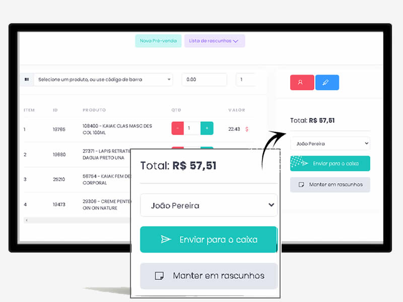vendas rápidas direto no Caixa da